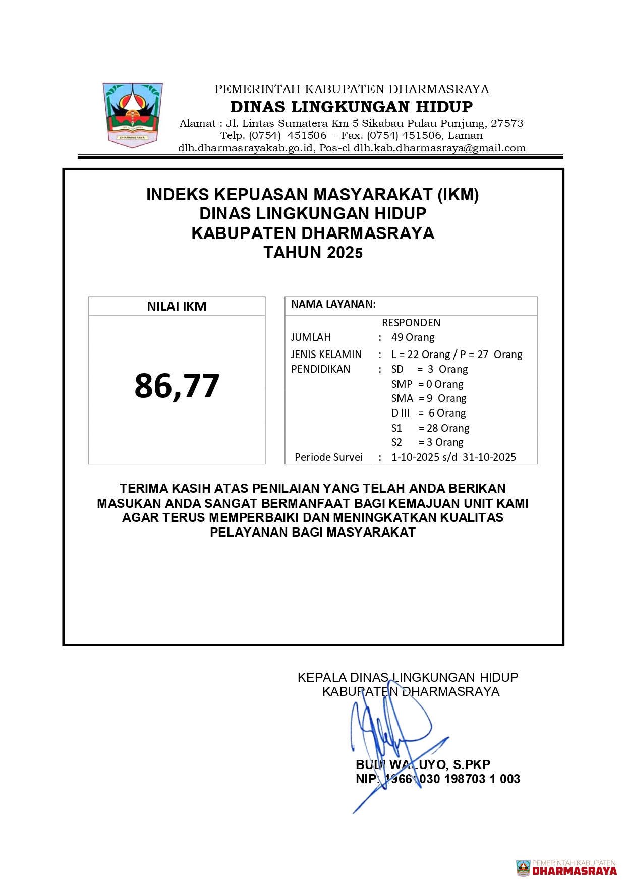 Dinas Lingkungan Hidup Kabupaten Dharmasraya merupakan OPD yang baru dibentuk pada Tahun 2017 yang sebelumnya merupakan Badan Lingkungan Hidup